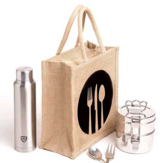 Designed for practicality and style, our jute tiffin bags are perfect for carrying lunch boxes. They are durable and easy to clean. With their rustic charm and practical design, our jute tiffin bags are perfect for daily use, while you're heading to work.